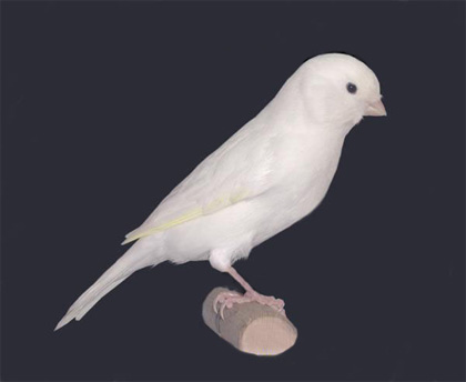 Branco recessivo – Ave com uma brancura imaculada, normalmente é uma raça de canários que cria facilmente, logo que lhe sejam dadas as condições necessárias.